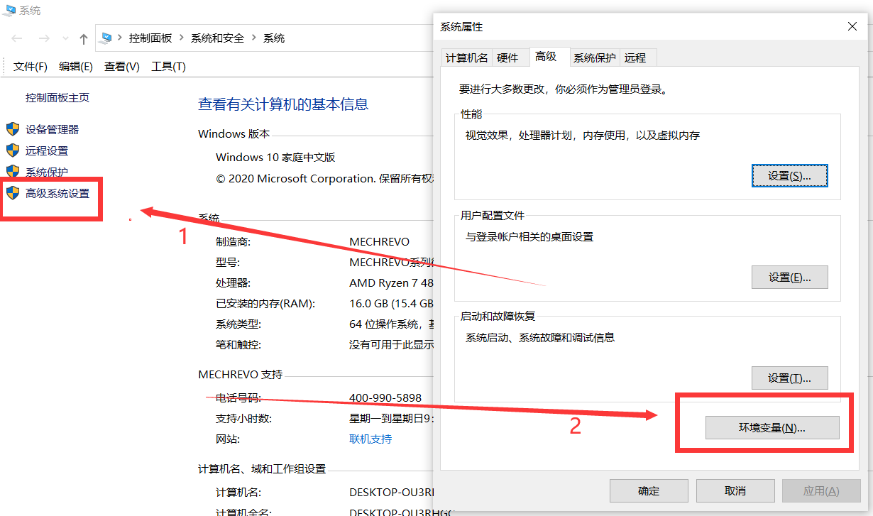 2.选择高级系统设置—>选择环境变量