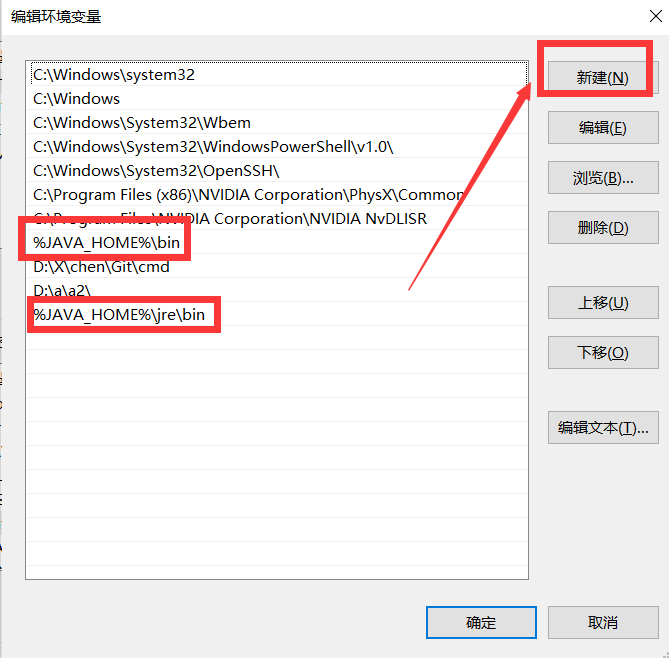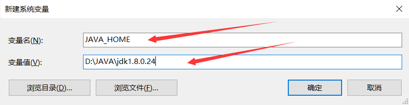 (1)选择新建:变量名 JAVA_HOME 这个是固定的
