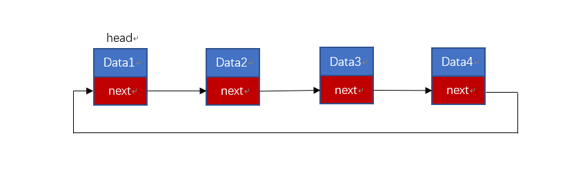 next表示指针,它永远指向自身的下一个结点,对于只有一个结点的存在,这个next指针则永远指向自身,对于一个链表的尾部结点,next永远指向开头。