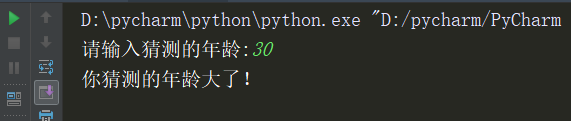 4.构造猜年龄游戏,要求:当输入年龄大于指定年龄,输出猜大了;当输入年龄小于指定年龄,输出猜小了。