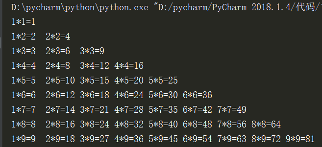 print(f'{j}*{i}={(i*j): ^2}',end=' ')