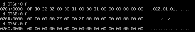 assume cs:code,ds:data1 data1 segment db 50, 48, 50, 50, 0, 48, 49, 0, 48, 49 ; ten numbers data1 ends data2 segment db 0, 0, 0, 0, 47, 0, 0, 47, 0, 0 ; ten numbers data2 ends data3 segment db 16 dup(0) data3 ends code segment start:mov ax,data1 mov ds,ax mov cx,10 mov si,0 s: mov al,[si] add ax,[16+si] mov [32+si],al inc si loop s mov ax,4c00h int 21h code ends end start