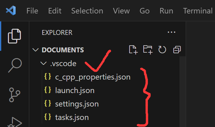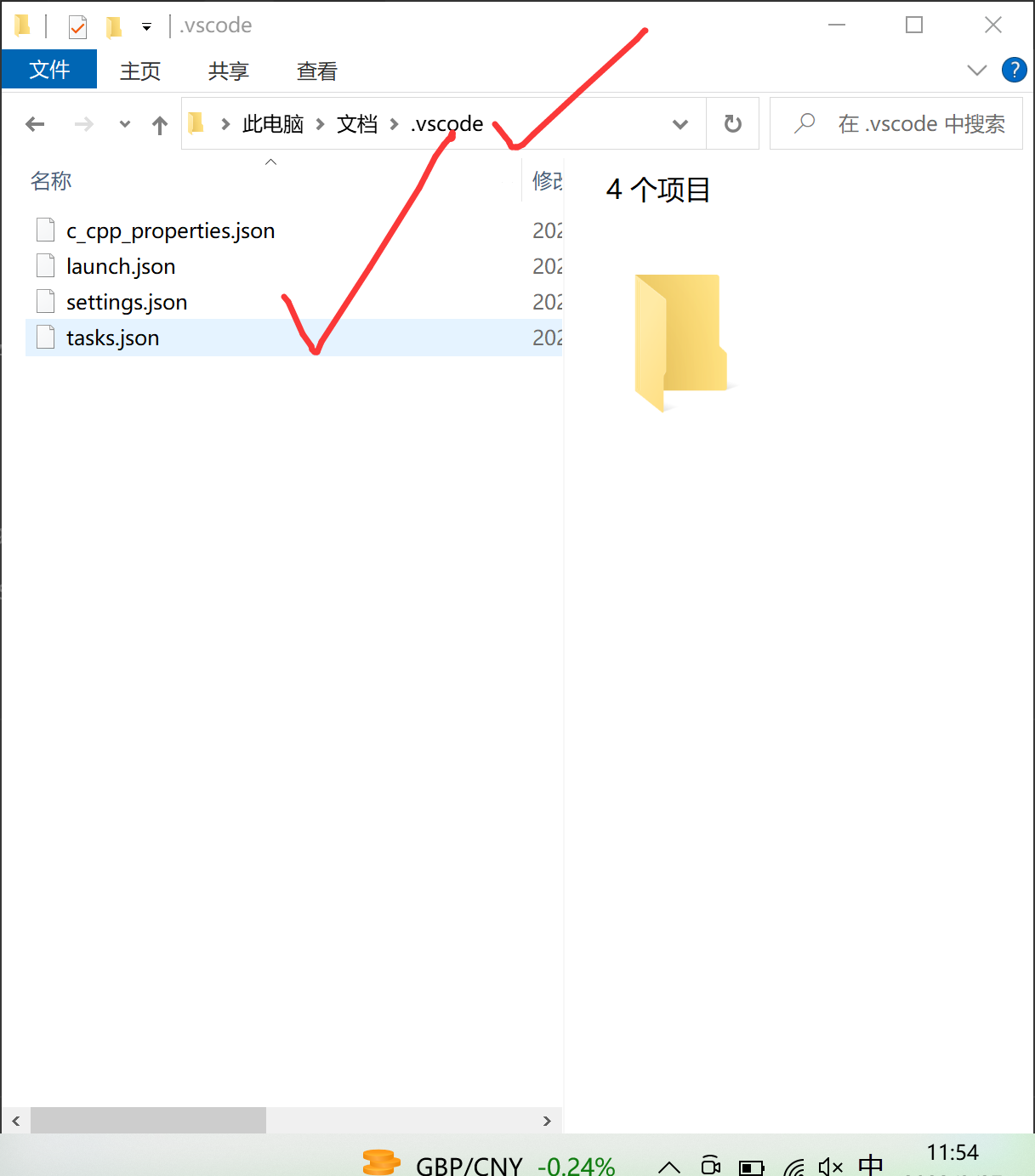 5.在.vscode文件空间中配置四个json文件,可以自动生成,但是也可以自己新建文件(当然自动生成的需要修改一些参数,不然不是c++20标准[doge],所以建议直接复制粘贴我写好的)