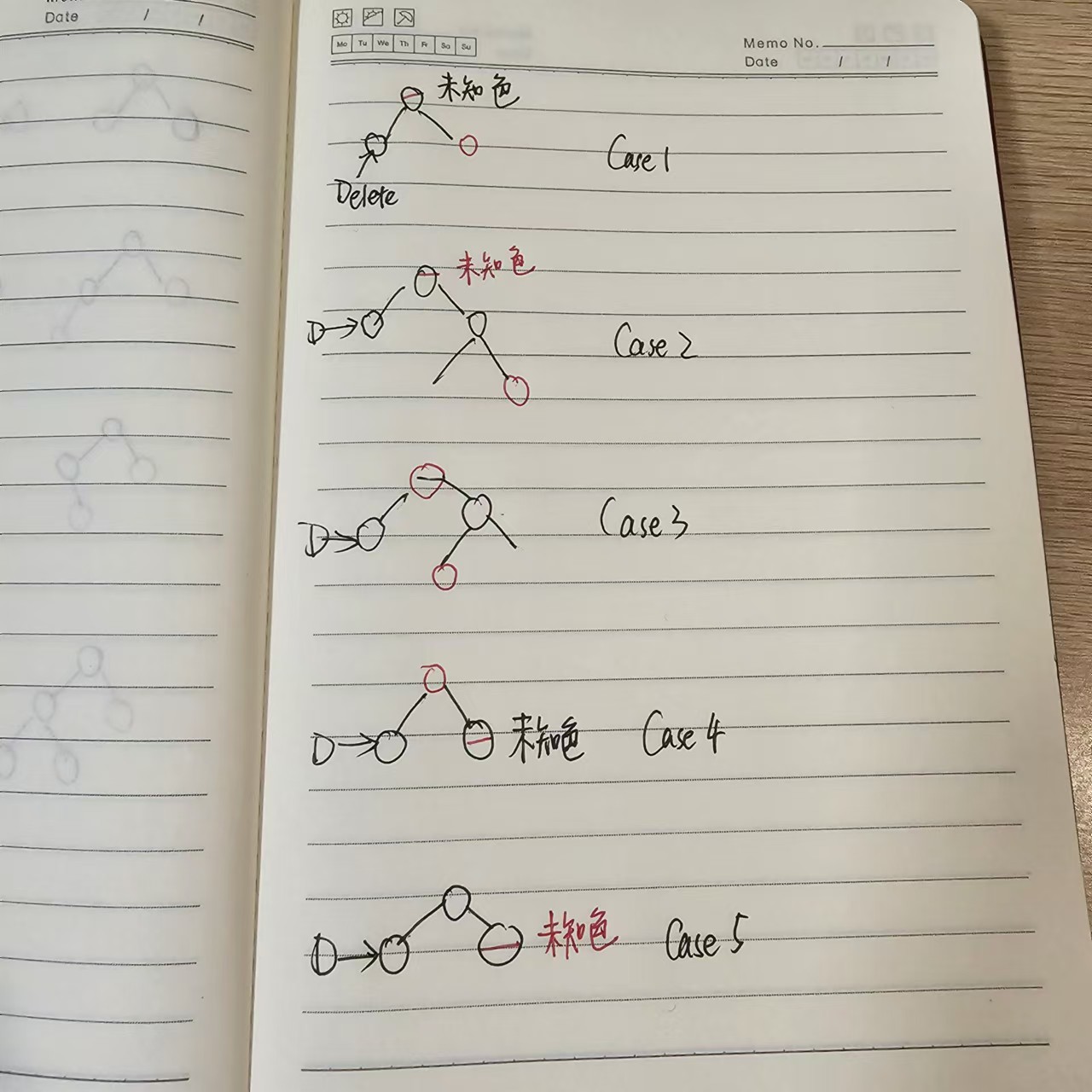 对于删除来说,和AVL一样,只会删除右子树的最左边那个位置(后继节点),为了平衡先不变颜色。