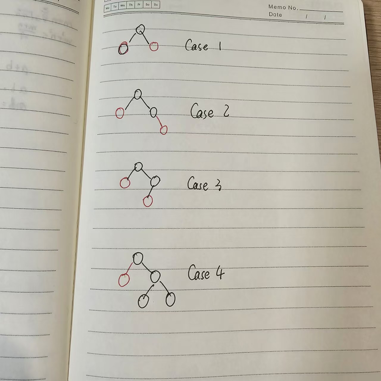 1. 所以我们首先考虑如果只是染色是否能够解决问题,如果双亲的兄弟姐妹是红色就很好办,直接让祖父母变成红色,然后双亲和双亲的兄弟姐妹都变成黑色就行。(Case1)