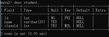 insert into classes values (3,'三班');