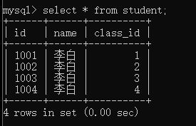 insert into student values (1004,'李白',4);