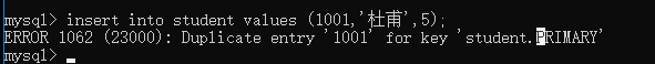 insert into student values (1001,'杜甫',5);