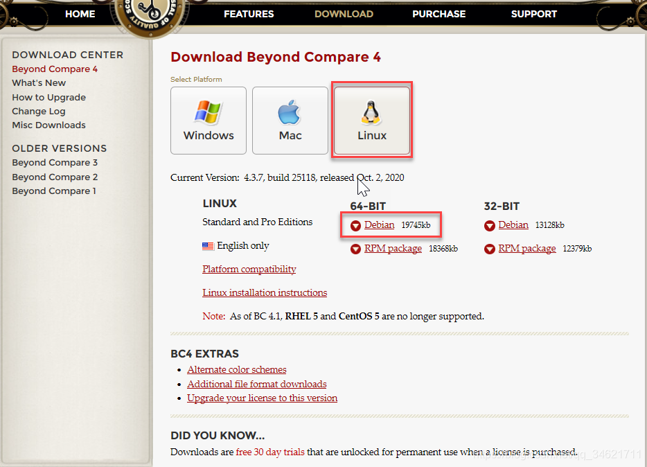 在链接https://www.scootersoftware.com/download.php下载安装包:选择下载如下红色框(linux版本);