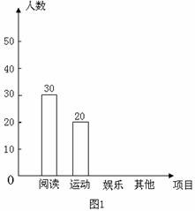 某中学为了了解该校学生的课余活动情况,从阅读、运动、娱乐、其他等四个方面调查了若干名学生的兴趣爱好,并将调查结果绘制了如下两幅不完整的统计图(图1,图2),请你根据统计图中提供的信息解答下列问题: