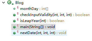需要先定义一个数组monthDay用来存放每个月的最大天数。checkInputValidity用来判断输入年月日是否合法,传入数据,判断结果用boolean型返回。isLeapYear方法判断闰年,同样返回boolean型。nextDate方法用来计算下一天,传入日期后先对day进行判断,如果是当月最后一天则月份加1,day清零为1,再对月份判断,如果是十二月则年份加1,月份清零为1。以下是该方法: