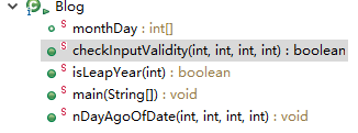主要差距在nextDate方法换成了nDayAgoOfDate方法,也是题目要求的方法。该方法首先判断传入的agoDay数据的正负,正数则计算其前n天,负数则计算其后n天。判断完毕后计算,day加上或减去其值后判断其是否超出限制(1号与该月最大号数),之后操作月份(agoDay正数则减,否则增),再操作年份(与month相同)。以下是该方法具体代码: