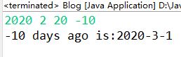 1 public static void nDayAgoOfDate(int year, int month, int day, int ago) { 2 monthDay[0] = monthDay[2] = monthDay[4] = monthDay[6] = monthDay[7] = monthDay[9] = monthDay[11] = 31; 3 monthDay[3] = monthDay[5] = monthDay[8] = monthDay[10] = 30; 4 monthDay[1] = 28; 5 if(isLeapYear(year)) { 6 monthDay[1] += 1; 7 } 8 int agoYear = 0; 9 int agoMonth = 0; 10 int agoDay = day - ago; 11 if(agoDay < 1) { 12 if(month == 1) { 13 agoYear = year - 1; 14 agoMonth = 12; 15 agoDay = monthDay[11] + agoDay; 16 } 17 else { 18 agoYear = year; 19 agoMonth = month -1; 20 agoDay = monthDay[month - 2] + agoDay; 21 } 22 } 23 else if(agoDay > monthDay[month - 1]){ 24 if(month == 12) { 25 agoYear = year + 1; 26 agoMonth = 1; 27 agoDay = agoDay - monthDay[11]; 28 } 29 else { 30 agoYear = year; 31 agoMonth = month + 1; 32 agoDay = agoDay - monthDay[month -1]; 33 } 34 } 35 else { 36 agoYear = year; 37 agoMonth = month; 38 } 39 System.out.println(ago + " days ago is:" + agoYear + "-" + agoMonth + "-" + agoDay); 40 }