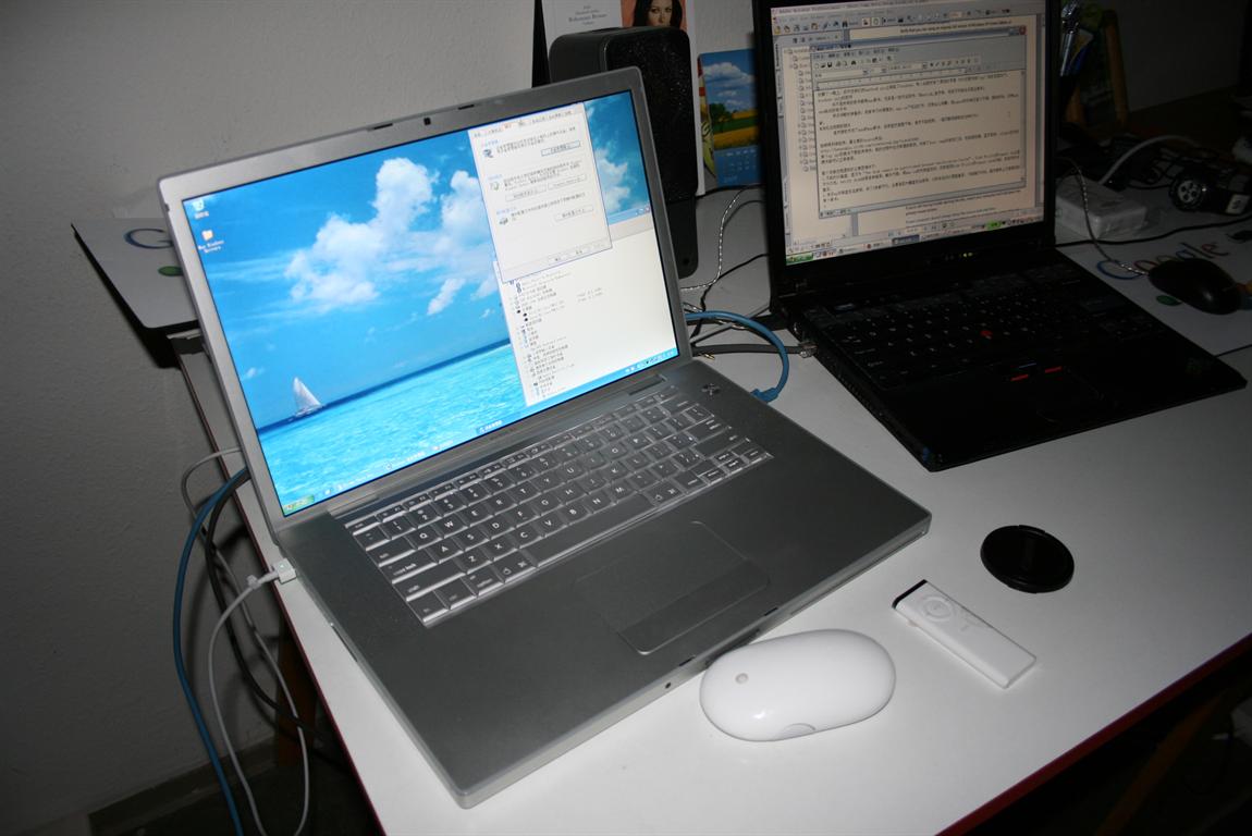 那个xp sp2的版本下载起来很快,装的过程中也没有遇到麻烦。安装了boot camp的驱动之后,包括遥控器,蓝牙鼠标,iSight,背光键盘在内的硬件都可以正常使用。