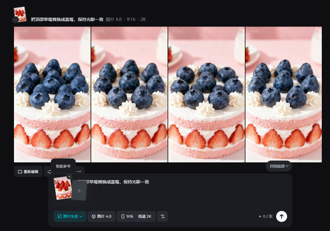 如果你要问“AI改图能力强用哪家软件?” 目前能真正满足蛋糕卖家商业需求的只有——即梦AI生图功能。