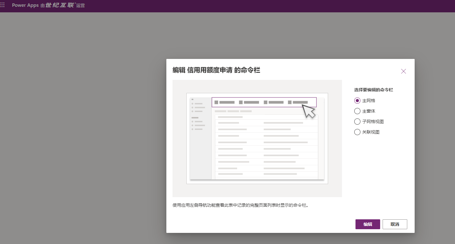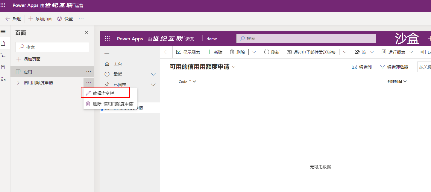 在需要添加按钮的页面,选择编辑命令栏,并选择需要编辑的命令栏