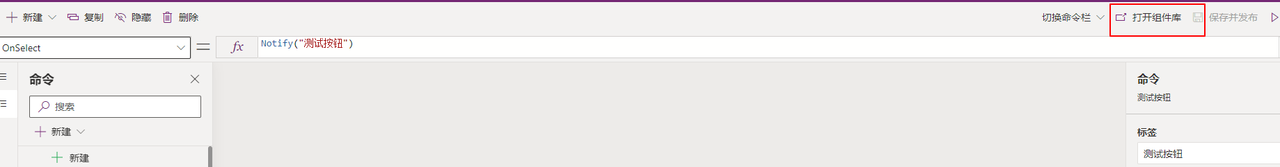 在测试按钮之前,需要进入组件库,将其保存并发布,可以看到组件库的也是在PowerApps Studio中进行编辑