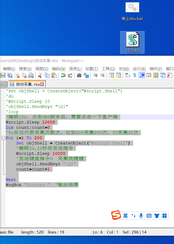 '睡眠10s,点击VBS脚本后,需要点击一下客户端