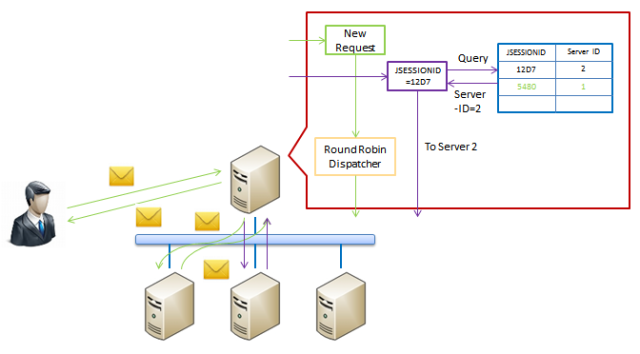解决该问题所曾经使用的一个解决方案就是:将负载平衡服务器以反向代理的方式使用。在这种方案中,负载平衡服务器将拥有服务的证书,并可以通过证书中的密钥对请求进行解密。解密完成后,负载平衡服务器就可以开始尝试读取Cookie中的内容并根据其所记录的信息决定该请求所需要派发到的服务实例。在对该请求进行派发的时候,负载平衡服务器可以不再使用SSL连接,进而使得各个服务实例不再需要再次解密请求,提高服务实例的运行效率。