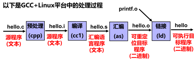 hello.c进行预处理、编译、汇编和链接,最终生产可执行目标文件