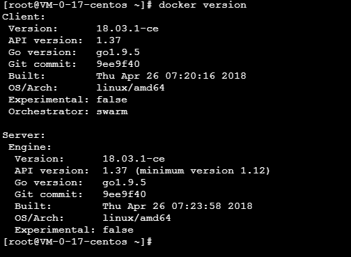 docker version 看是否有ClIent和Server。有说明安装成功!那么下一步来配置docker