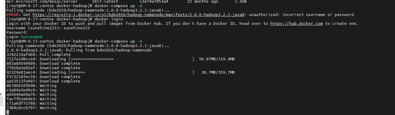 - 拉取镜像 https://gitee.com/sunshine223518/docker-hadoop.git