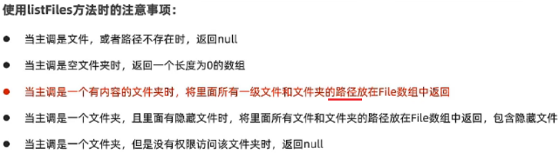 public File[] listFiles():返回一个File数组,表示该File目录中的所有(一级)子文件或目录的对象。
