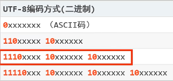 大部分常用字(含中文),使用三个字节编码。