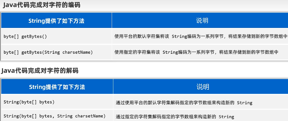 - 解码:将存储在计算机中的二进制数按照某种规则显示出来。字节到字符的过程。
