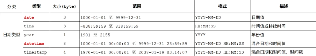 4. datetime:日期,包含年月日时分秒 yyyy-MM-dd HH:mm:ss