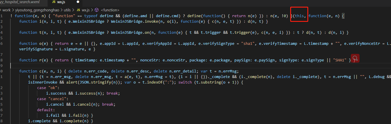 改源码,将jweixin-1.2.0.js中第一个this改为window