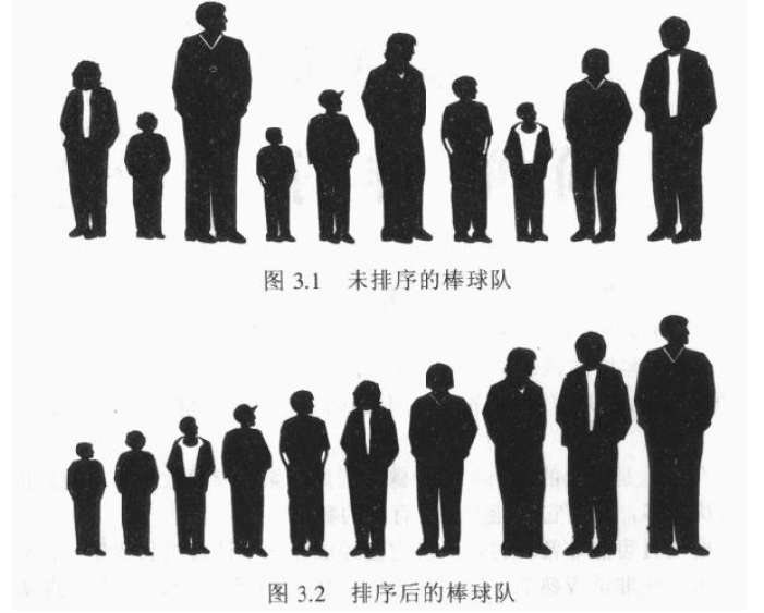 假设有一队棒球队员 如图3.1,3.2,需要对棒球队员进行排序: