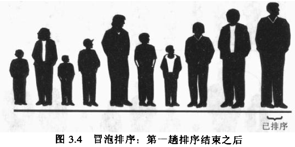 图3.4表示了再第一趟排序后棒球队员的排列情况: