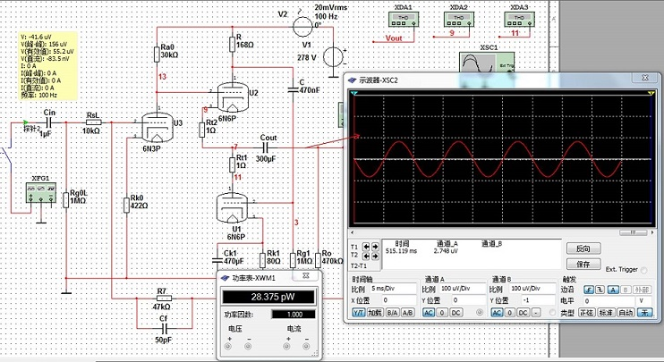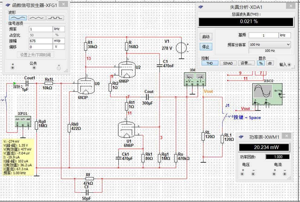 然后在调整R,让整体失真降到最低。整体电路测试情况如下图: