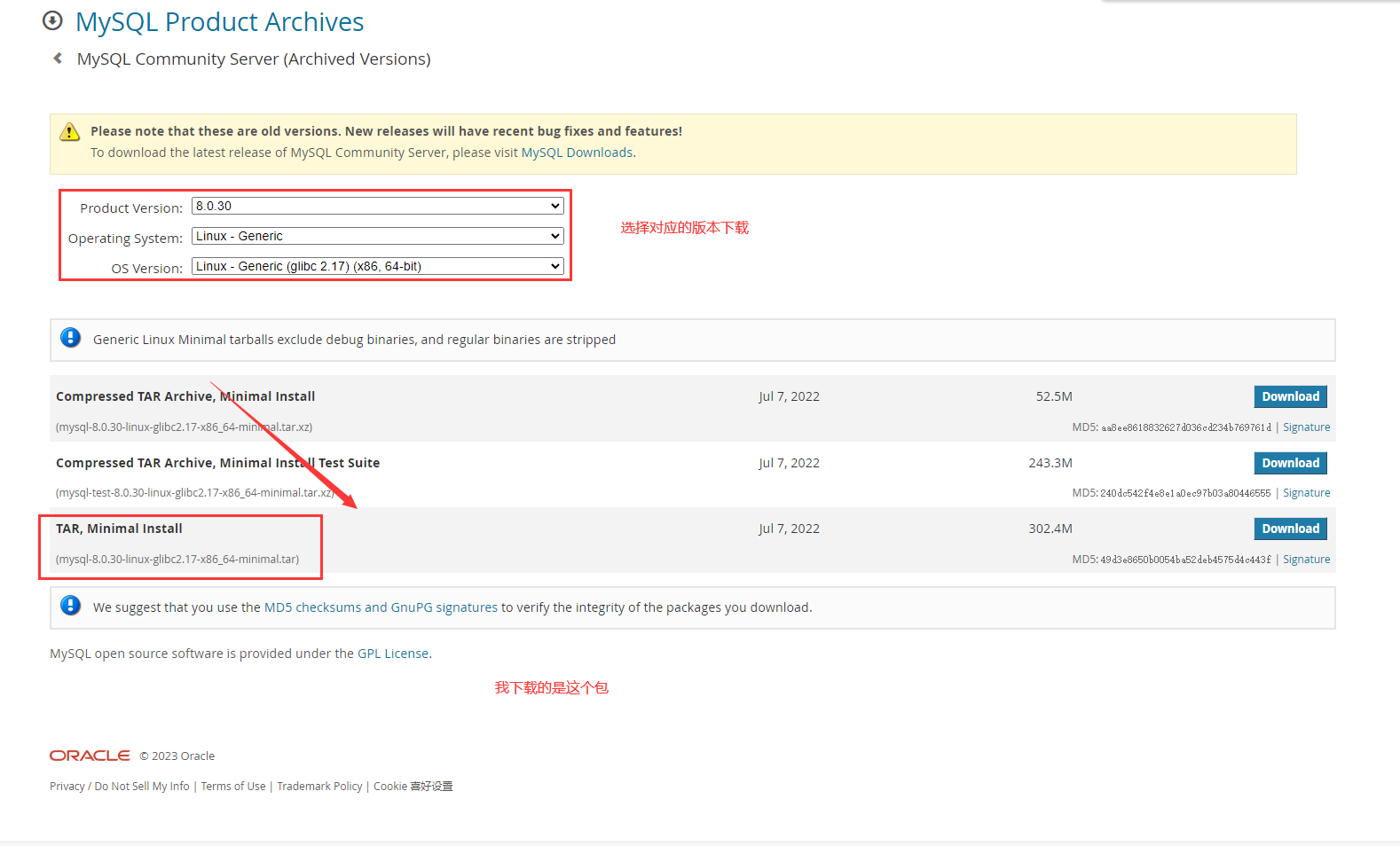 wget https://cdn.mysql.com/archives/mysql-8.0/mysql-8.0.30-linux-glibc2.17-x86_64-minimal.tar