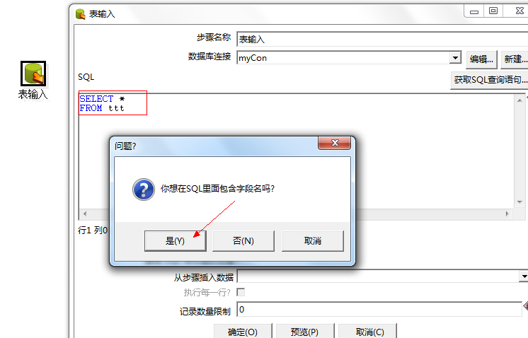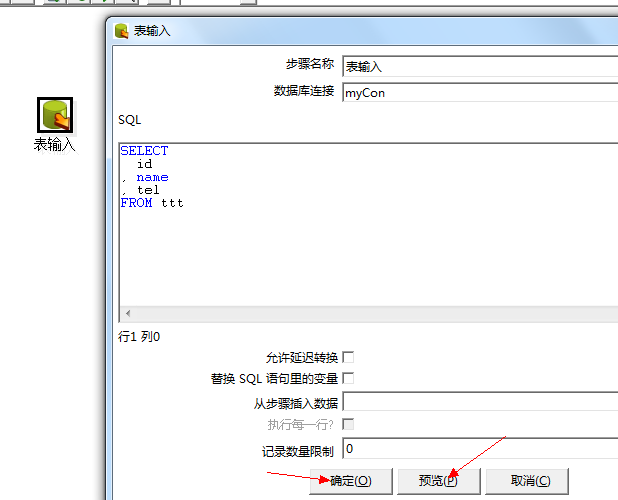 1、 从步骤插入数据:指定我们期待读取数据的步骤名称,这些信息能被插入到sql语句。
