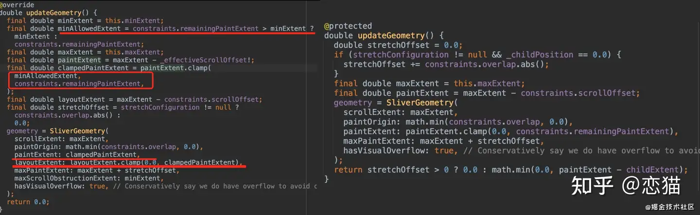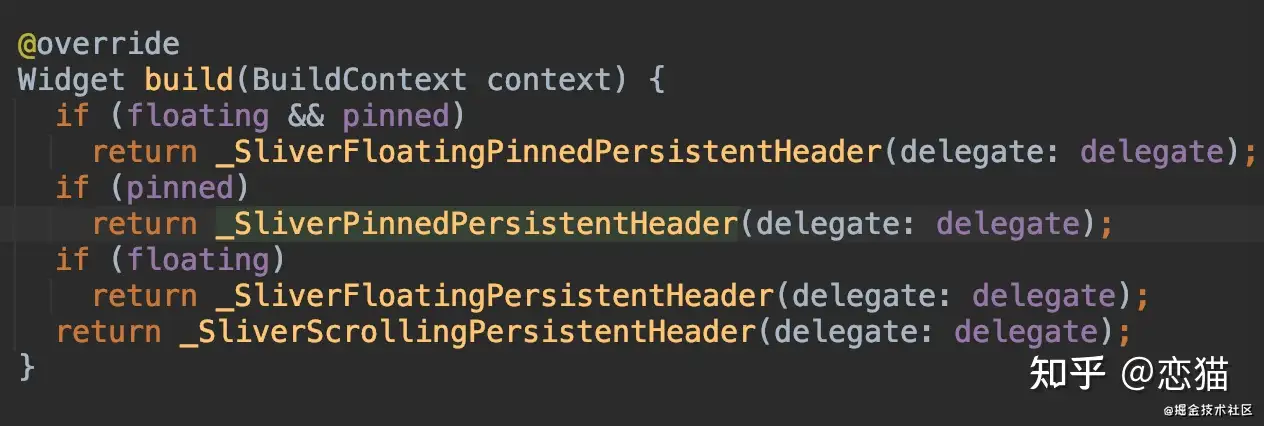 SliverPersistentHeader 主要是具备 floating 和 pinned 两个属性,它们的区别主要在于使用了不同的 RenderSliver 实现,而「最终不同的地方其实就是输出 SliverGeometry的不同」。