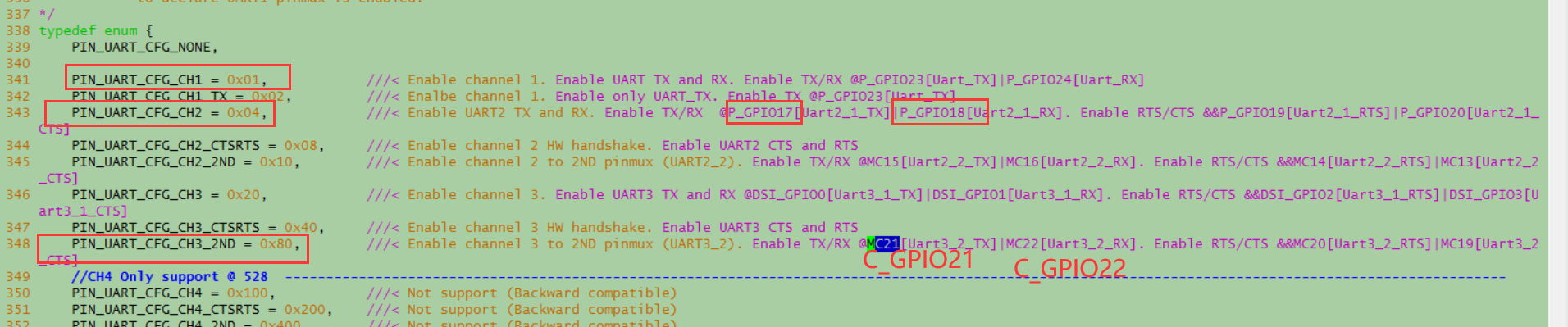 直接echo uart 0x85 > /proc/nvt_info/nvt_pinmux/pinmux_set写入后,发现ch2正常使用,CH3出不来。