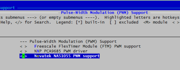 nvt_pwm是走/sys/class/pwm那套通用linux框架的,选这个的话,需要开启内核的下面的配置,,个人猜测,没有尝试