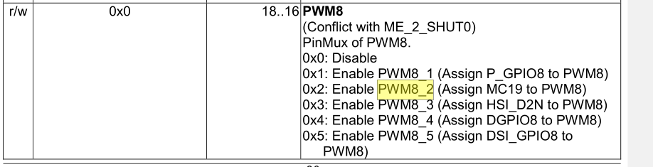 另外,pinmux_set配错的话,,PWM相关寄存器也会出问题,,下面是寄存器相关的,,一开始pinmux配错了,,,