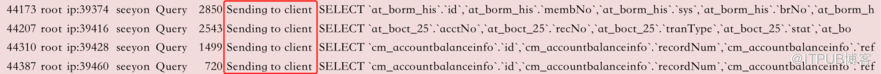 客户脱敏业务在访问MySQL数据库查询数据时,执行show processlist状态一直处于Sending to client状态,时间持续了1.5h还没有结束。
