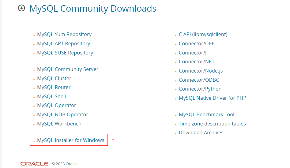 进入mysql官方网站后,按下图顺序点击“Downloads”->'Community'->“MySQL on Windows”->'MySQL Installer'进入下载页面。