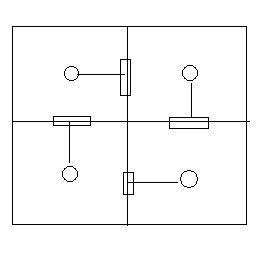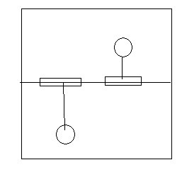 图中,圆圈代表玩家,方块代表2个门,从圆圈发出的直线代表玩家行进方向,重力向下,侧向图