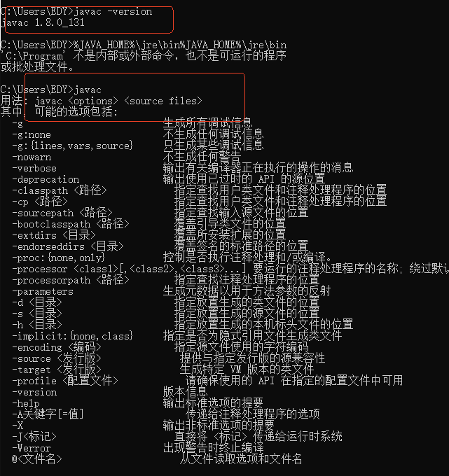 正确配置后输入javac,出现如下界面