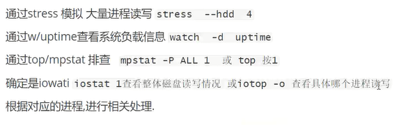 - I/O密集型 进程, 等待I/O 也会导致平均负载升高,但 CPU使用率不一定很高