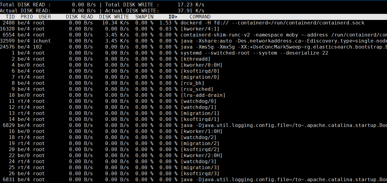[root@host-234 ~]# iostat Linux 3.10.0-1127.19.1.el7.x86_64 (host-234) 2022年08月17日 _x86_64_ (32 CPU) avg-cpu: %user %nice %system %iowait %steal %idle 1.61 0.00 0.74 0.30 0.00 97.34 Device: tps kB_read/s kB_wrtn/s kB_read kB_wrtn sdb 14.40 1.41 308.56 53843909 11814063450 sda 17.47 13.29 373.83 508979129 14313025448 dm-0 3.98 9.91 27.04 379521960 1035293816 dm-1 0.27 0.29 0.79 10929152 30295048 dm-2 5.63 3.10 345.98 118521576 13246791308 dm-3 18.15 1.41 308.58 53814784 11814705692 dm-4 61.06 1276.28 231.08 48866147007 8847722188 dm-5 0.08 0.01 2.61 437776 99887371 dm-6 0.10 0.02 2.54 626500 97072884 dm-17 0.06 0.02 1.93 676396 74035226 dm-18 0.00 0.00 0.00 129956 10067 dm-19 0.00 0.00 0.00 146961 11486 dm-10 0.06 0.09 1.55 3353342 59327101 dm-8 0.00 0.00 0.00 158923 63592 dm-9 0.07 0.36 1.41 13791169 54042151 dm-13 0.00 0.02 0.00 608332 95174 dm-11 0.00 0.01 0.00 200058 76432 dm-12 2.54 9.93 81.39 380211145 3116143442 dm-14 0.00 0.02 0.00 908663 107019 dm-15 0.00 0.01 0.00 229295 88952 dm-16 0.00 0.00 0.01 100564 352063