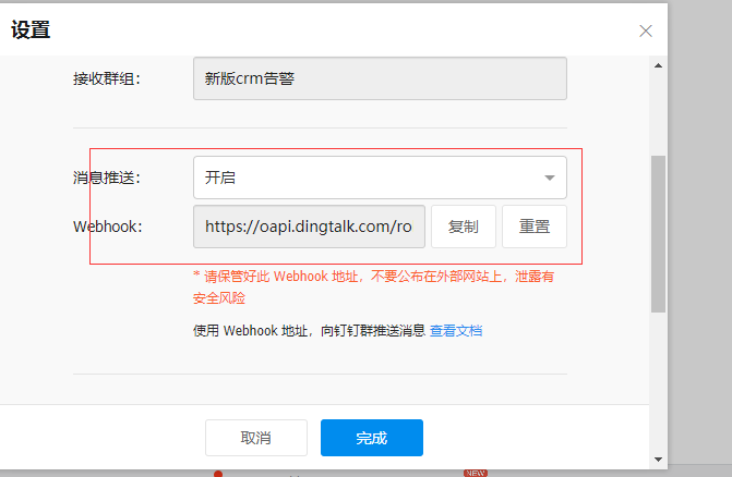 <?php return [ // 是否开启报错写入 'enabled' => boolval(get_resource_config_section('app', 'pur')["monitorDing_enabled"]), // curl证书验证, 线下环境不用开启 'curl_verify' => boolval(get_resource_config_section('app', 'pur')["monitorDing_curl_verify"]), 'web_name'=>get_resource_config_section('app', 'pur')["monitorDing_web_name"], // webhook的值 'webhook' => get_resource_config_section('app', 'pur')["monitorDing_webhook"], ];