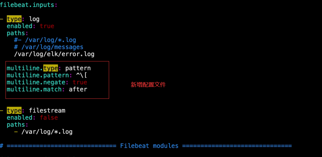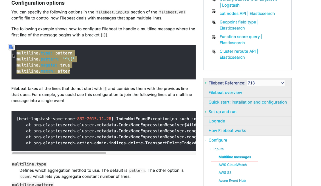 multiline.type:pattern multiline.pattern:^\[ multiline.negate:true multiline.match:after