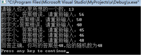 printf("数字大,答案错误,请重新输入:");