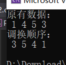 #include <stdio.h> int main(){ int m[4] = { 1,4,5,3 }; int i, j, k; printf("原有数据:\n"); for (i = 0; i <= 3; i++) printf("%2d", m[i]); printf("\n"); for (i = 0, j = 3; i <= j; i++, j--) { k = m[i]; m[i] = m[j]; m[j] = k; } printf("调换顺序:\n"); for (i = 0; i <= 3; i++) printf("%2d", m[i]); printf("\n"); }![]()